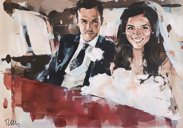 ✓ High quality original A2 acrylic painting on canvas of the happy couple delivered straight to your door (from photograph and available 3 weeks after wedding date)